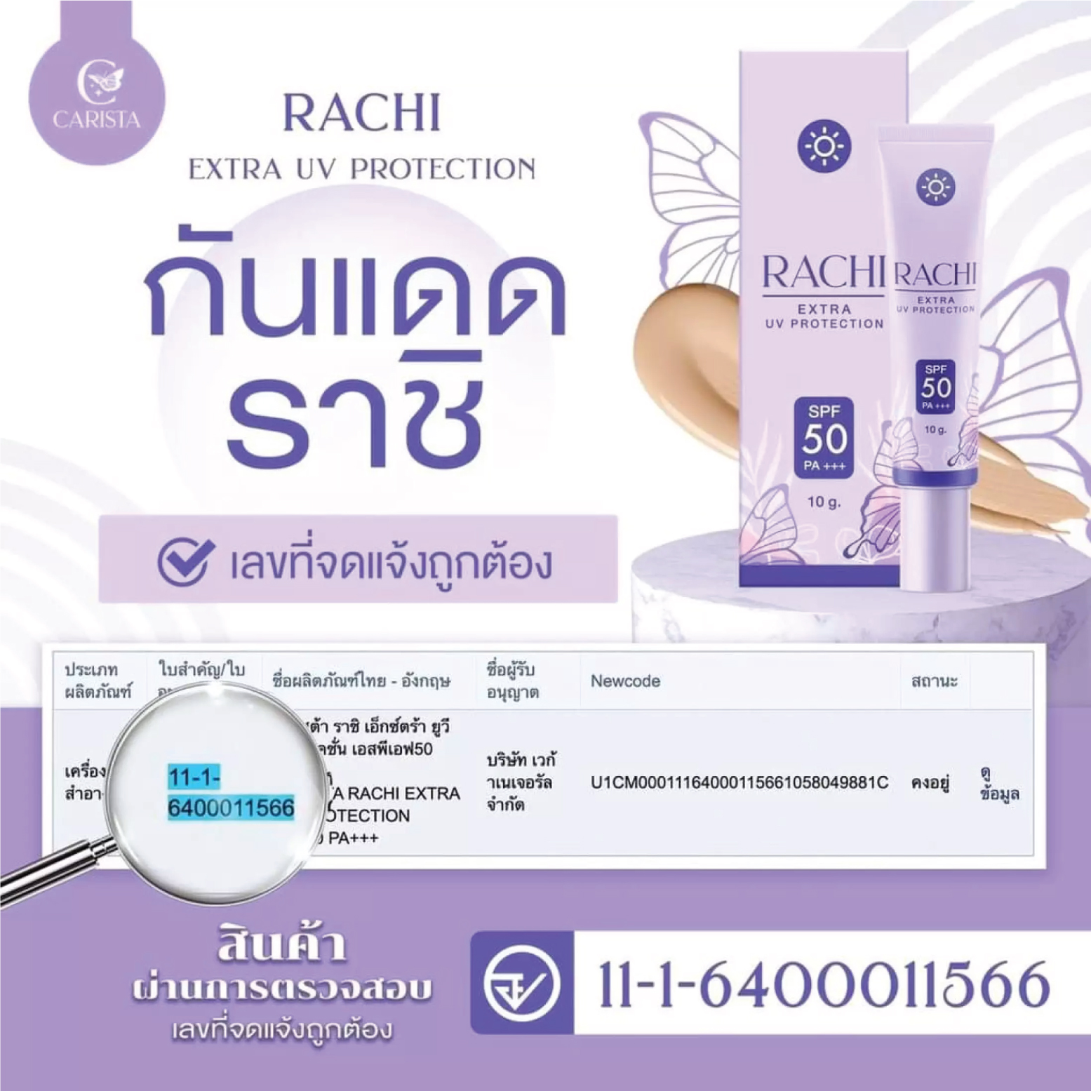 วิธีใช้ : หลังลงบำรุงผิว ตามด้วยกันแดดราชิ