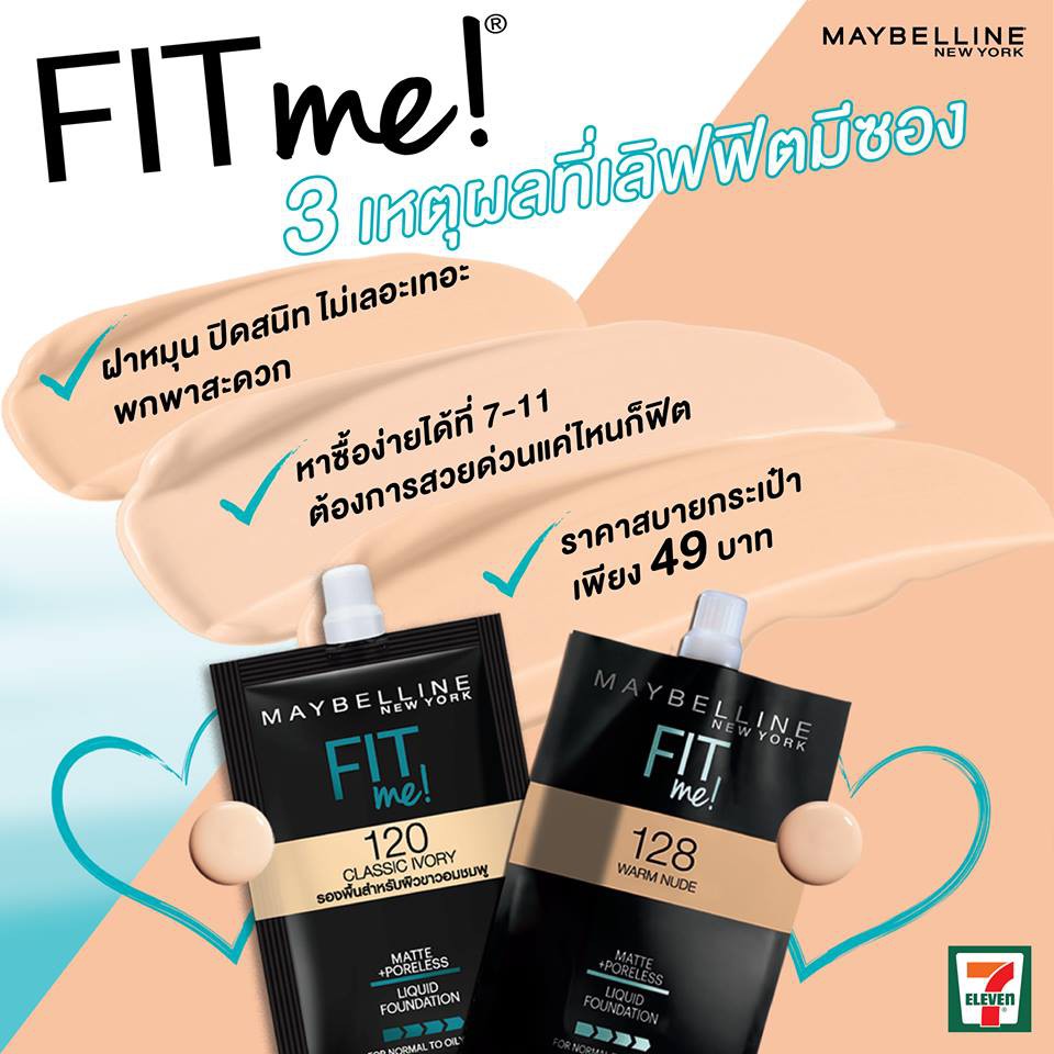 Fit Me Matte Foundation รองพื้นแบบซอง สามารถหาซื้อได้ง่ายๆที่เซเว่นทั่วประเทศไทย