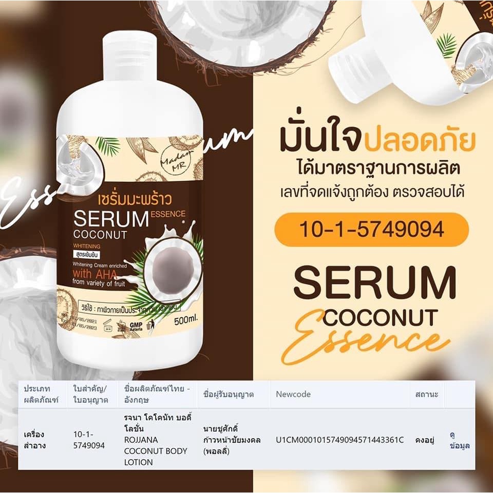 Serum Coconut Essence เซรั่มมะพร้าวขาวไว 500g.