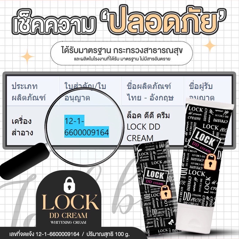 DD Cream LOCK ทาผิวขาว ปรับผิวสม่ำเสมอ 100 g.