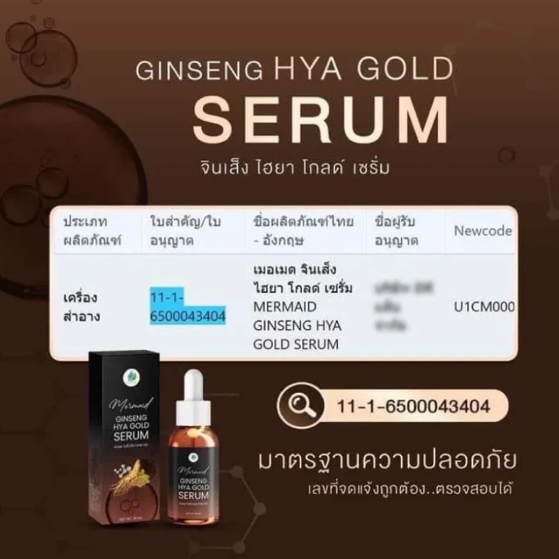 ซรั่มโสมทองไฮยา เซรั่มสูตรเข้มข้นสารสกัดหลักจากรากโสม,ทองคำบริสุทธิ์,