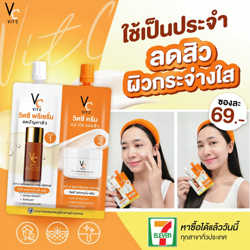 Vc VIT C รัชชา Ratcha วิตซี แอดวานซ์ พรี-เซรั่ม + วิตซี ไวท์เทนนิ่ง ครีม 48กรัม