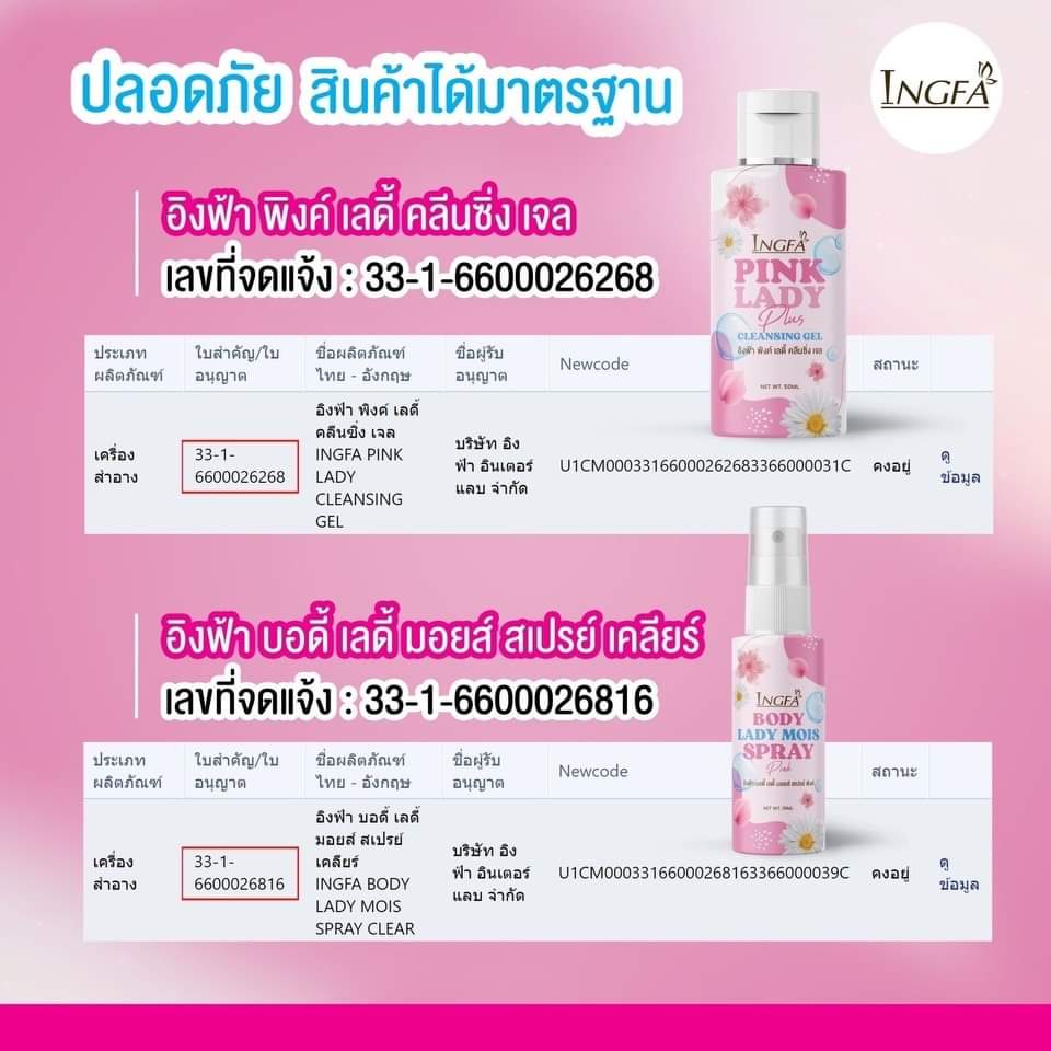 น้ำยาอนามัยล้างจุดซ่อนเร้น อิงฟ้าพิ้งค์เลดี้