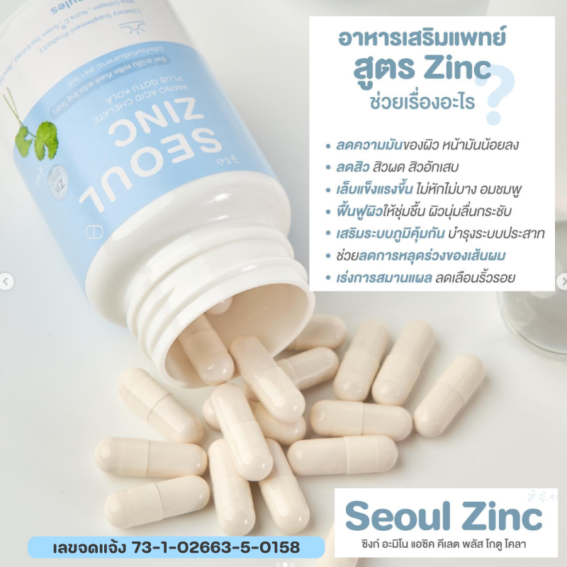 Seoul Zinc Amino Plas Kola ซิงค์ โซล 20แคปซูล