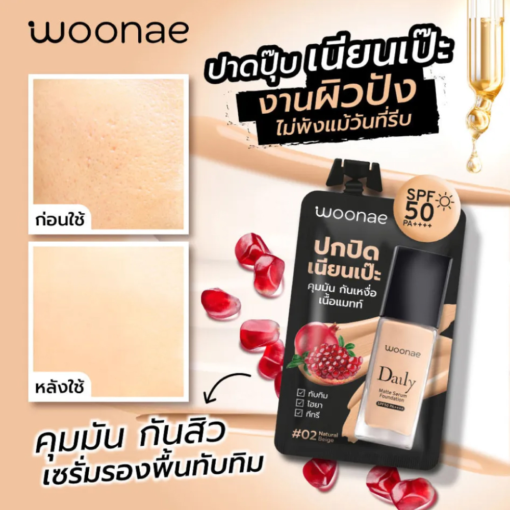 วูเน่ เดลี่ แมทท์ เซรั่ม ฟาวเดชั่น SPF50 PA++++ 8กรัม #02 Natural Beige