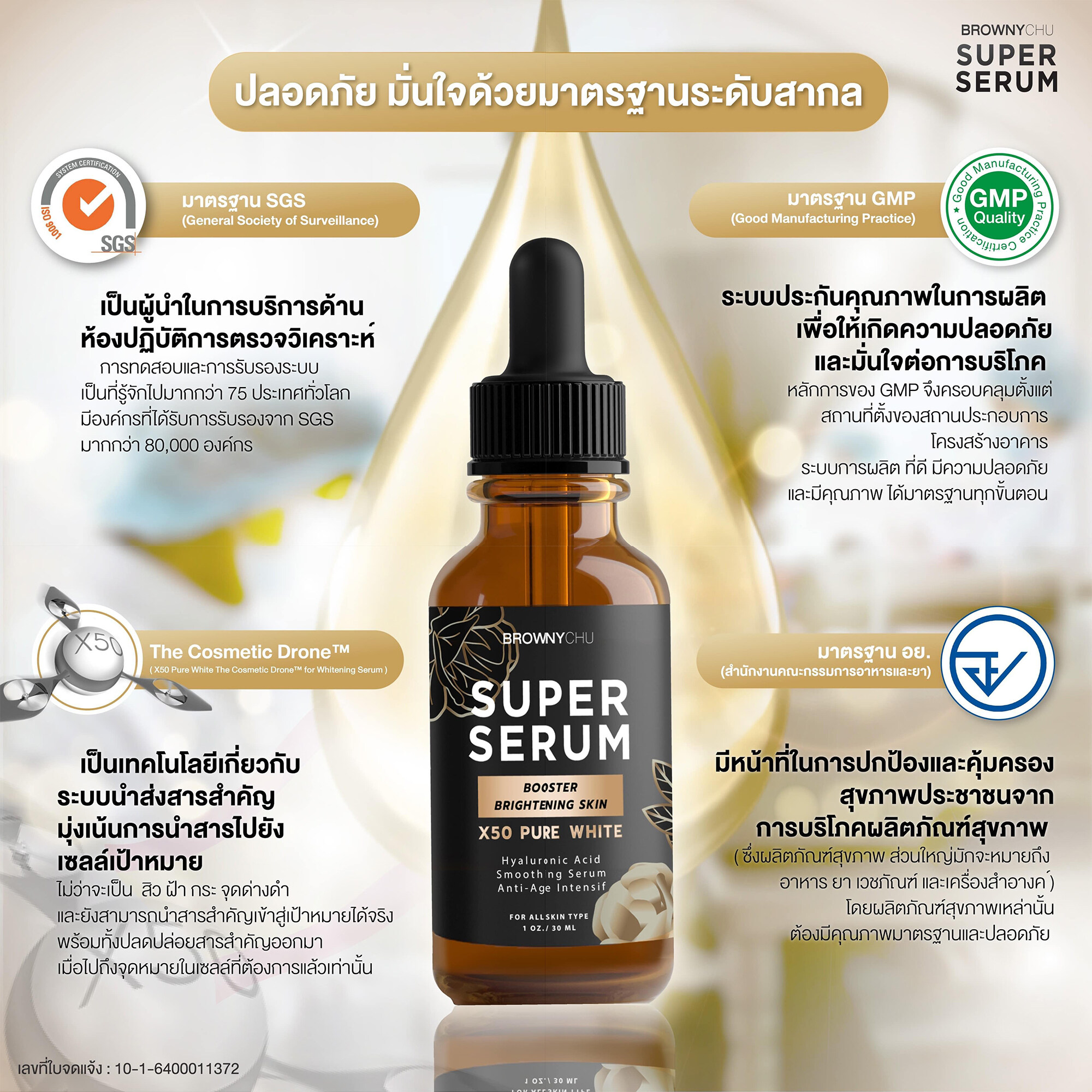 #เลขที่ใบจดแจ้ง อย. : 10-1-6400011372