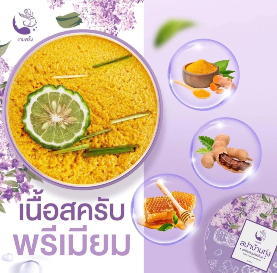 สครับสปาบ้านทุ่ง (แพคเกจใหม่) สครับสมุนไพรไทย สครับงามพริ้ง 250กรัม