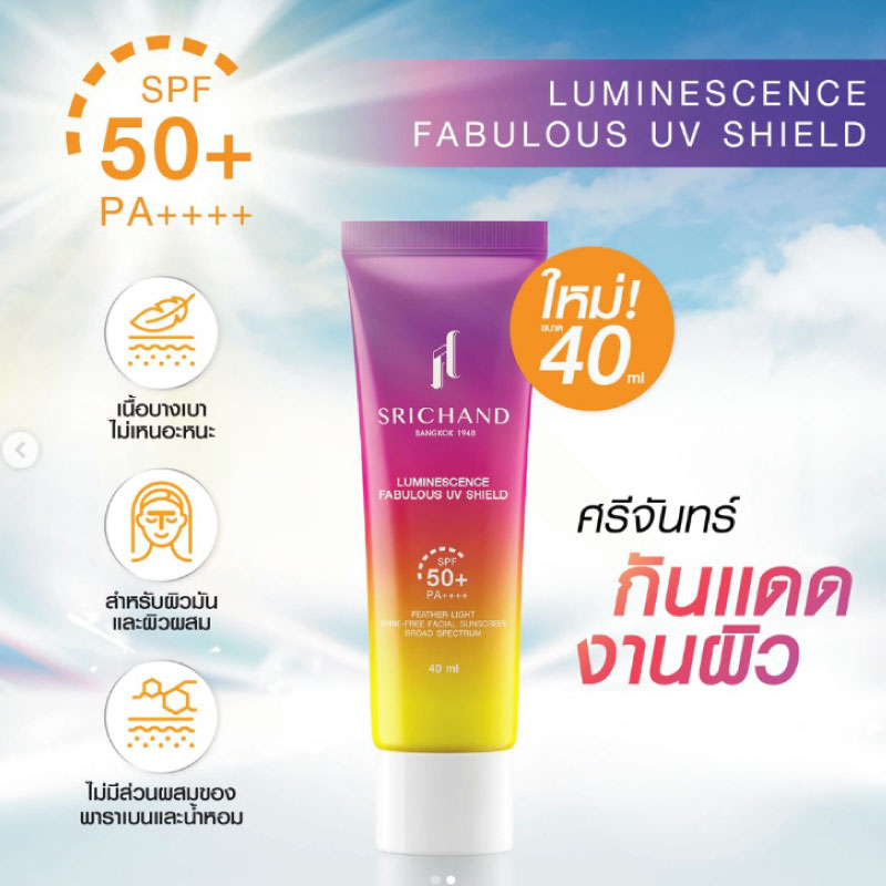 Srichand ศรีจันทร์ ครีมกันแดด ลูมิเนสเซนส์ แฟบูลัส ยูวี ชิลด์ SPF50+ PA++++ 40มล.