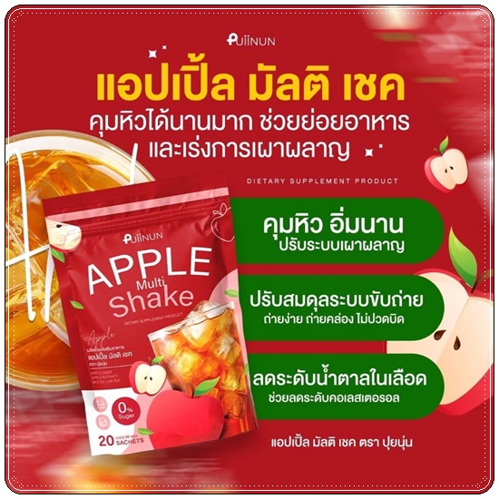 Apple Multi Shake Puiinun ลดน้ำหนัก ปรับระบบขับถ่าย (1ถุง20ซอง)