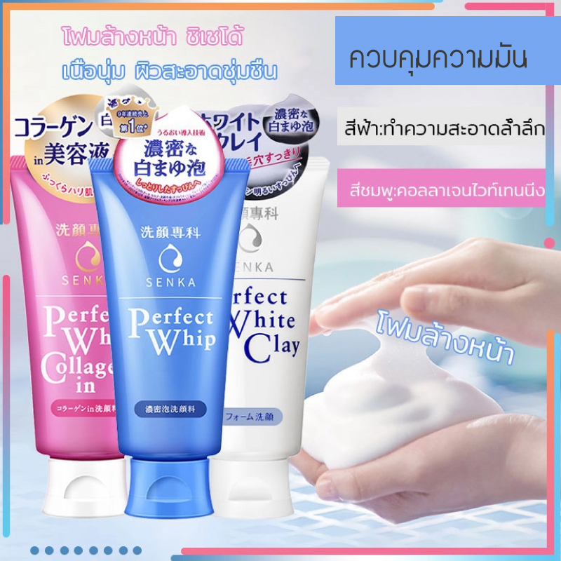 (หลอดสีฟ้า)SENKA PERFECT WHIP 120g สามารถทำความสะอาดผิวได้อย่างดีเยี่ยม