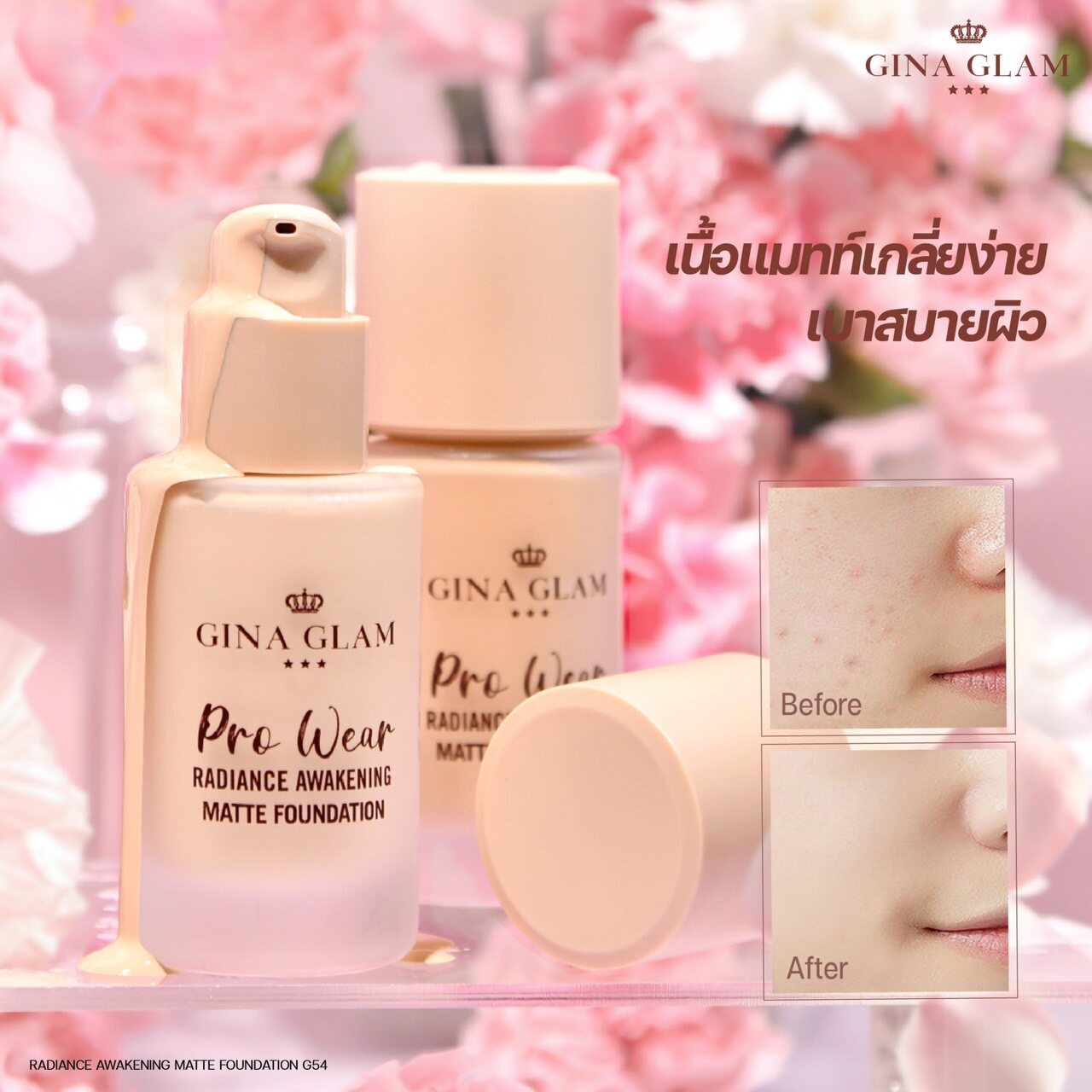 GINA GLAM G54 #02 จีน่า แมทท์ ฟาวเดชั่น รองพื้นเนื้อลิควิด สูตรผิวแมทท์ กันน้ำ กันเหงื่อ 35 ml.