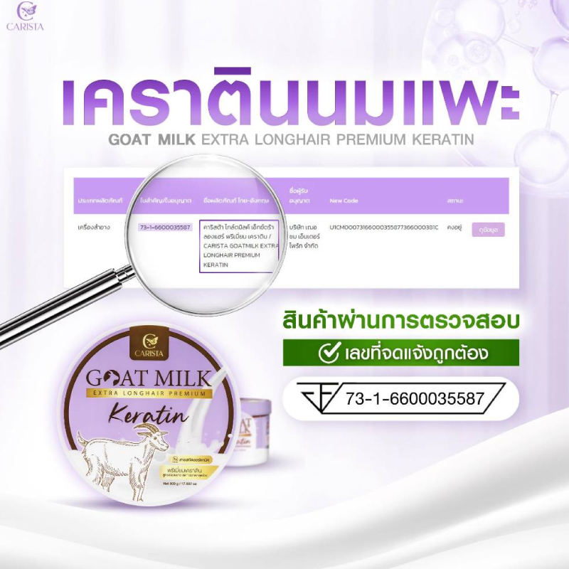 Carista Goat Milk Premium Extra Longhair keratin เคาราตินแพะ สูตรเร่งผมยาว