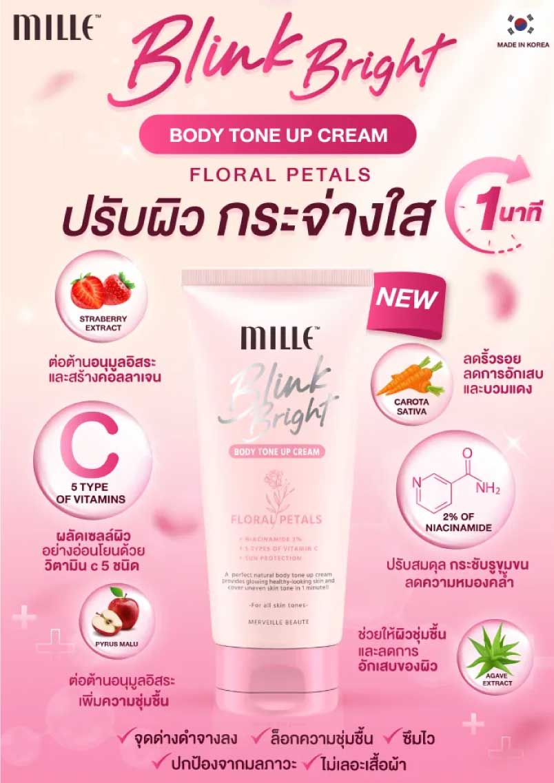 Mille Blink Bright Body Primer Cream มิลเล่ บลิ๊งค์ ไบรท์ บอดี้ ไพรเมอร์ ครีม ฟลอรัล พัท