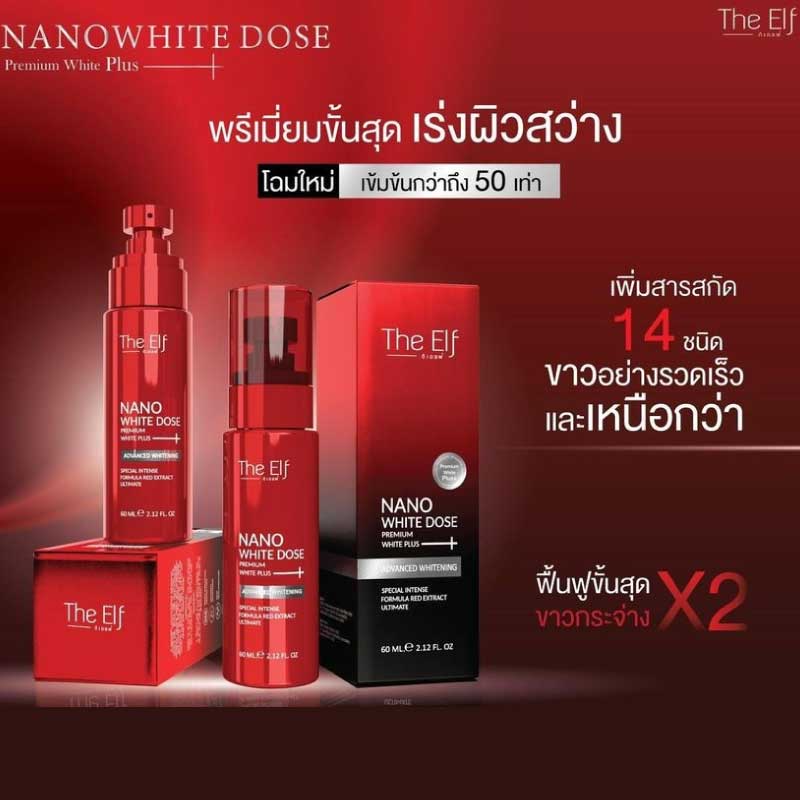 The Elf Nano White Dose Premium White Plus+ อีฟ นาโนไวท์โดส ดิเอลฟ์ บำรุงผิว สูตรเข้มข้น 60ml.