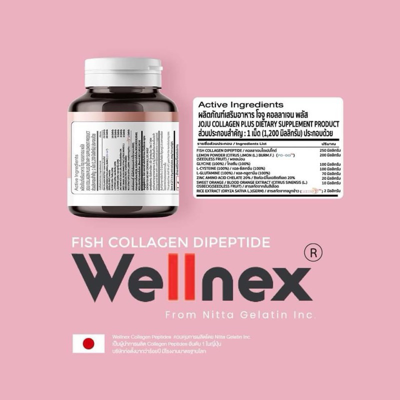 - ผลิตโดย Nitta Gelatin Inc. ประเทศญี่ปุ่น ผู้นำในการผลิตคอลลาเจน ยาวนานกว่า 100 ปี