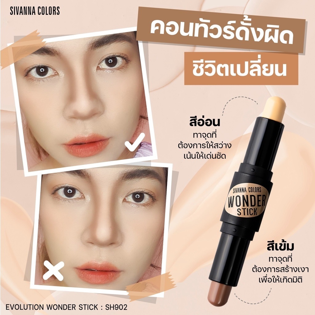 Sivanna Super Cover Evolution Wonder Stick #HF626 NO.03 อิโวลูชั่น สติ๊ก ไฮไลท์และคอนทัว 10g.