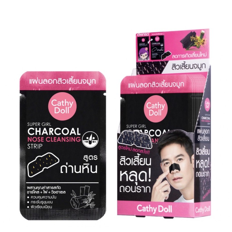 [#กล่อง 12 ซอง] #Cathy Doll #Super #Girl #Charcoal #Nose #Cleansing #Strip #แผ่นลอกสิวเสี้ยนจมูก